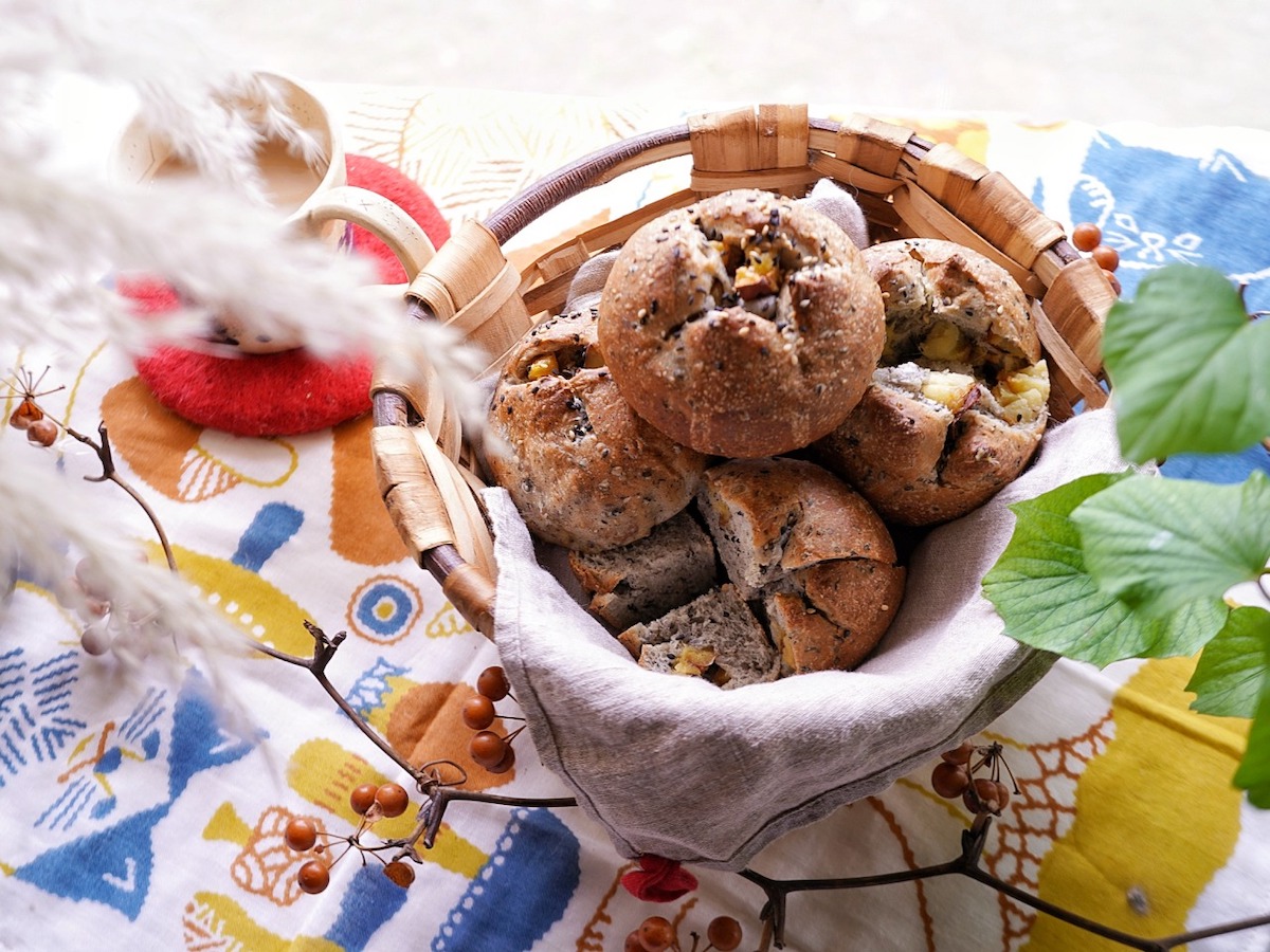 秋の味覚がたっぷり! 黒ゴマ香る焼き芋プチパン【kyoko_plusのレシピ&テーブルコーデvol.73】