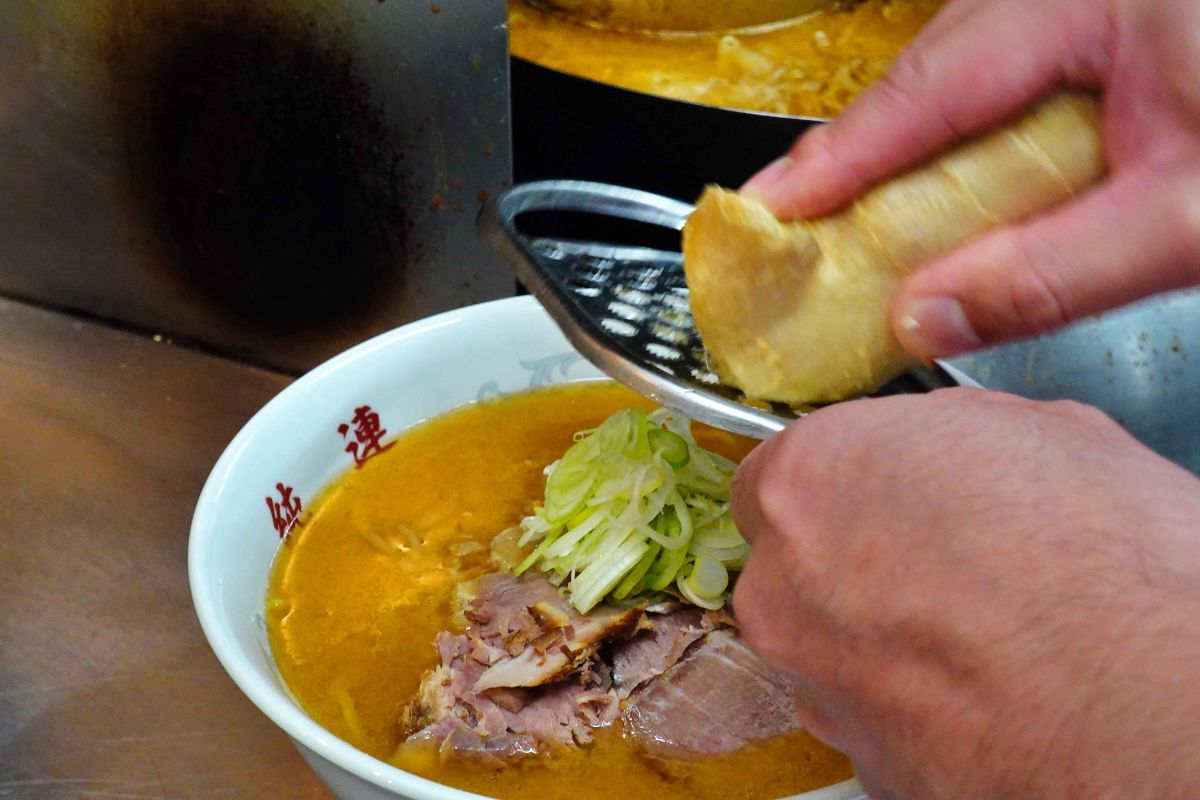 札幌ラーメンの中では軍を抜く濃厚なスープが魅力の当店ですが、提供前に根生姜をたっぷり入れることで、しっかりした味わいながらも不思議と後味はすっきりしています。