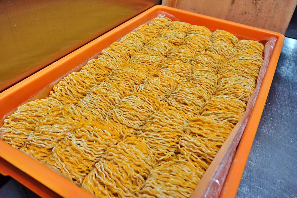 麺は創業当時から変わらず森住製麺の特注麺を使用。高加水の中太縮れ麺で、コシの強さが特徴です。