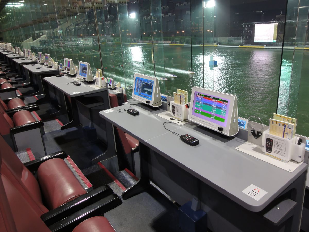レース場内へ入場したら、まずは無料エリアである1階の屋外スタンド席へ向かいましょう。こちらの座席は、なんといっても水面までの距離が近いのが特徴。ボートの迫力あるモーター音や、大外ギリギリを走る際の水しぶきがダイレクトに感じられます。そのスピード感にワクワクが止まりません♪