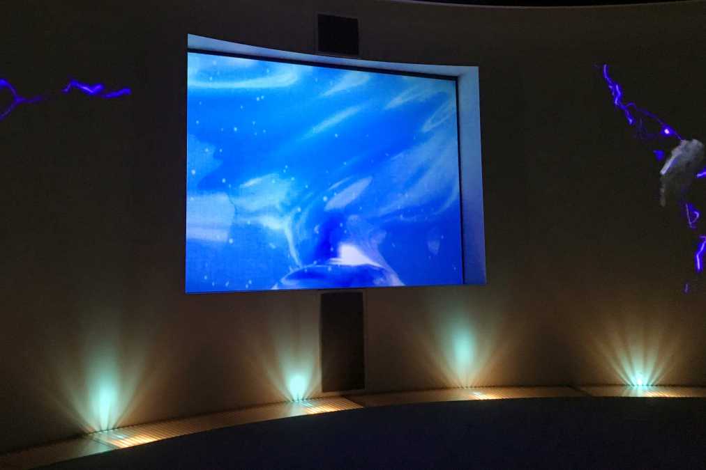 この巨大な施設についてわかりやすく教えてくれる試写室。水を管理する技術力はスゴイのです。
