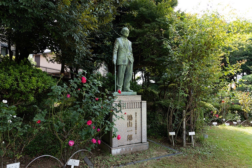 広々とした庭園には、一郎氏が首相時代に締結された「日ソ共同宣言」を記念して寄贈された、一郎氏の像があります。錦鯉が泳ぐ庭内の池の周りには、鳩山一郎氏の両親である鳩山和夫氏と春子氏の像も見られました。