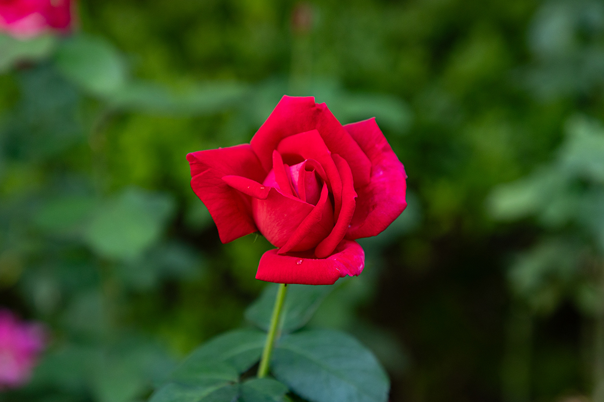 早速、ひとつひとつの品種を愛でてみましょう。こちらは、鳩山一郎氏が好んだという「友愛」という品種。友愛とは一郎氏が唱えた政治理念で、人間性の尊重を基本として、お互いの立場を理解し人類愛に根ざす助け合いの精神のこと。2008年、このバラこそが鳩山会館の庭園にふさわしいと、一郎と親交のあったナガセケンコー株式会社の代表取締役・長瀬ニ郎氏により寄贈されました。