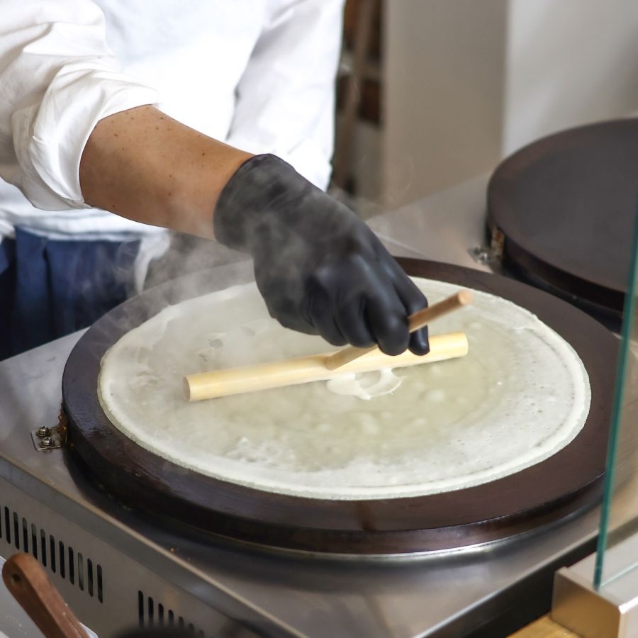 そのため、肉や野菜を巻いたいわゆる食事系クレープともまた異なり、さくっとした香ばしさともっちり食感が特徴的。ボリュームもあるため、おやつとしてはもちろん、ブランチやお昼ごはんにもおすすめ。
