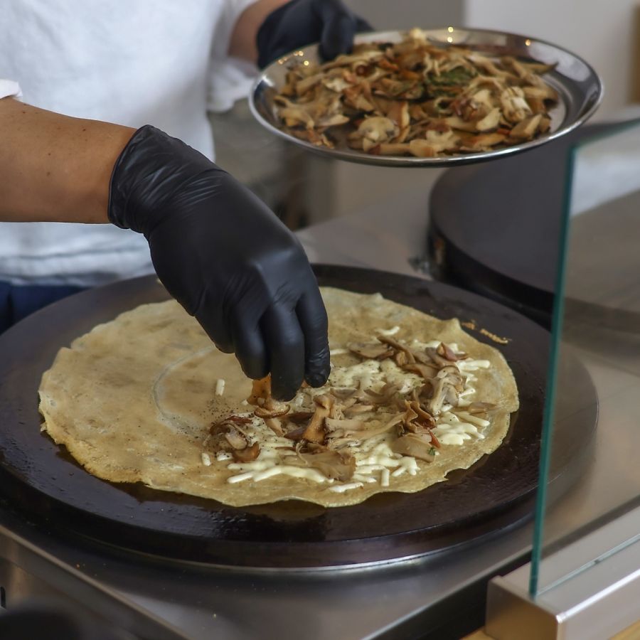 11月は季節が感じられるきのこをたっぷりと使った「ポルチーニのクレスペッレ 」1500円が登場。