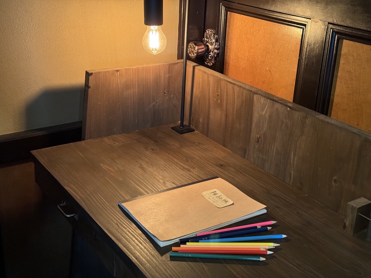 それぞれの「おこもり席」には雑記帳が1冊ずつ置いてあり、訪れたお客さんが自由に思いを綴ることができます。ぺらぺらとページをめくり眺めていると、「そんな場所から来たんだ」「こんな悩みがあるんだ」など、名前も顔も知らない人とノートを通して交流しているよう。SNSとはまた違った趣があり、何だか新鮮です。興味がある方は、ぜひチェックしてみてくださいね。