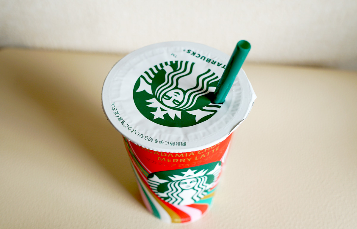 今年の味わいは?…というと、マカダミアナッツの香りとコーヒーが味わえるショコラ風味の贅沢ドリンクになっています。さっそく「スターバックス® マカダミア ショコラ メリーラテ」を飲んでみました!