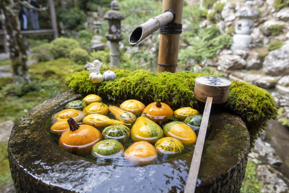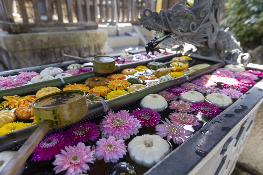 きっかけは2016年、浄土苑が寂しいので花が欲しいと、手水に紫陽花を浮かべてみたのが始まり。その後も境内入口の「龍手水」や「苔手水」など5カ所に四季の花々を浮かべるようになったそう。さらに娘さんがInstagramで公式アカウントを作って投稿したところ、「かわいい」「行ってみたい」と評判に。