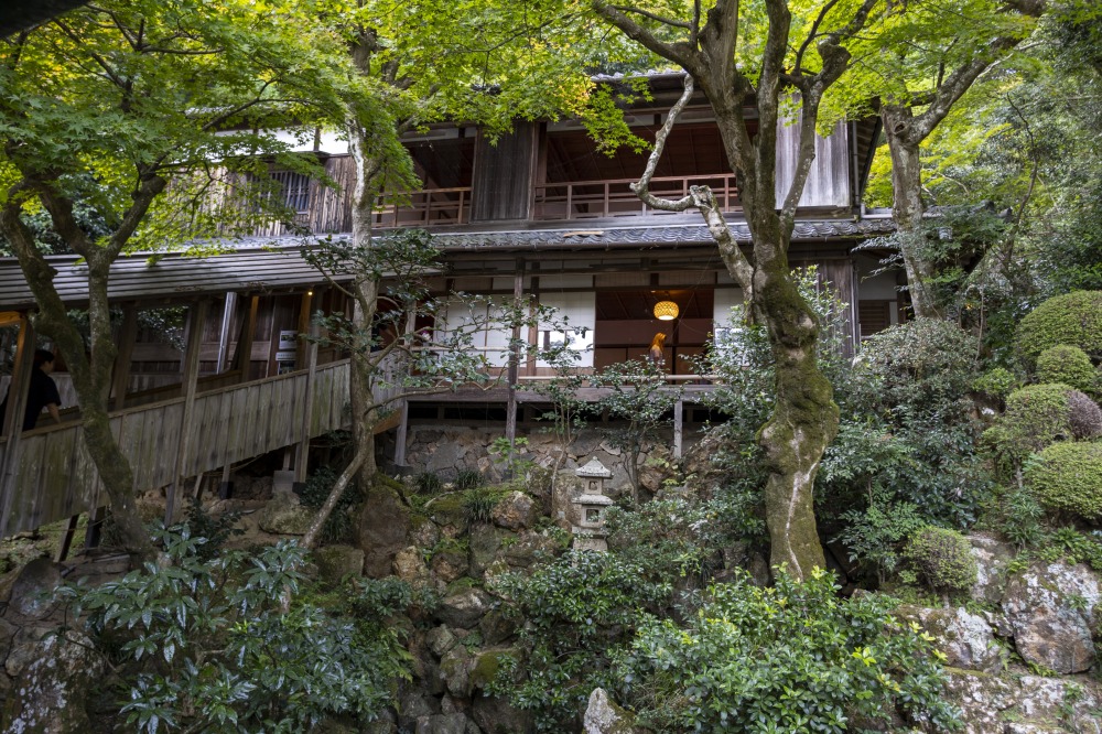 上書院から奥の院へと渡り廊下で続いていますが、見逃してはいけないのが庭にある「心琴窟」。実は近年作られたものです。「目の不自由な方でも五感で庭の美しさを感じられるように」と恵さんが造園業者に依頼したところ、偶然「眼力講」と彫られた灯篭が庭から見つかり、その石を甕として地中に埋め水琴窟の構造に。水を投じるとキーン、コーンと涼やかな音が響きます。