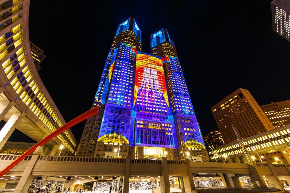 「西新宿イルミネーションマーケット」と合わせて、都庁第一本庁舎のプロジェクションマッピングも鑑賞してみて。投影されるのは東側壁面なので、全景を見るには都民広場がベスト。1月末までは1日9回上映され、初回は17時30分~、最終回は21時30分~。各回15分の上映で、平日と土日祝ではプログラムが異なります。詳細は「TOKYO Night & Light」のサイトをチェック。