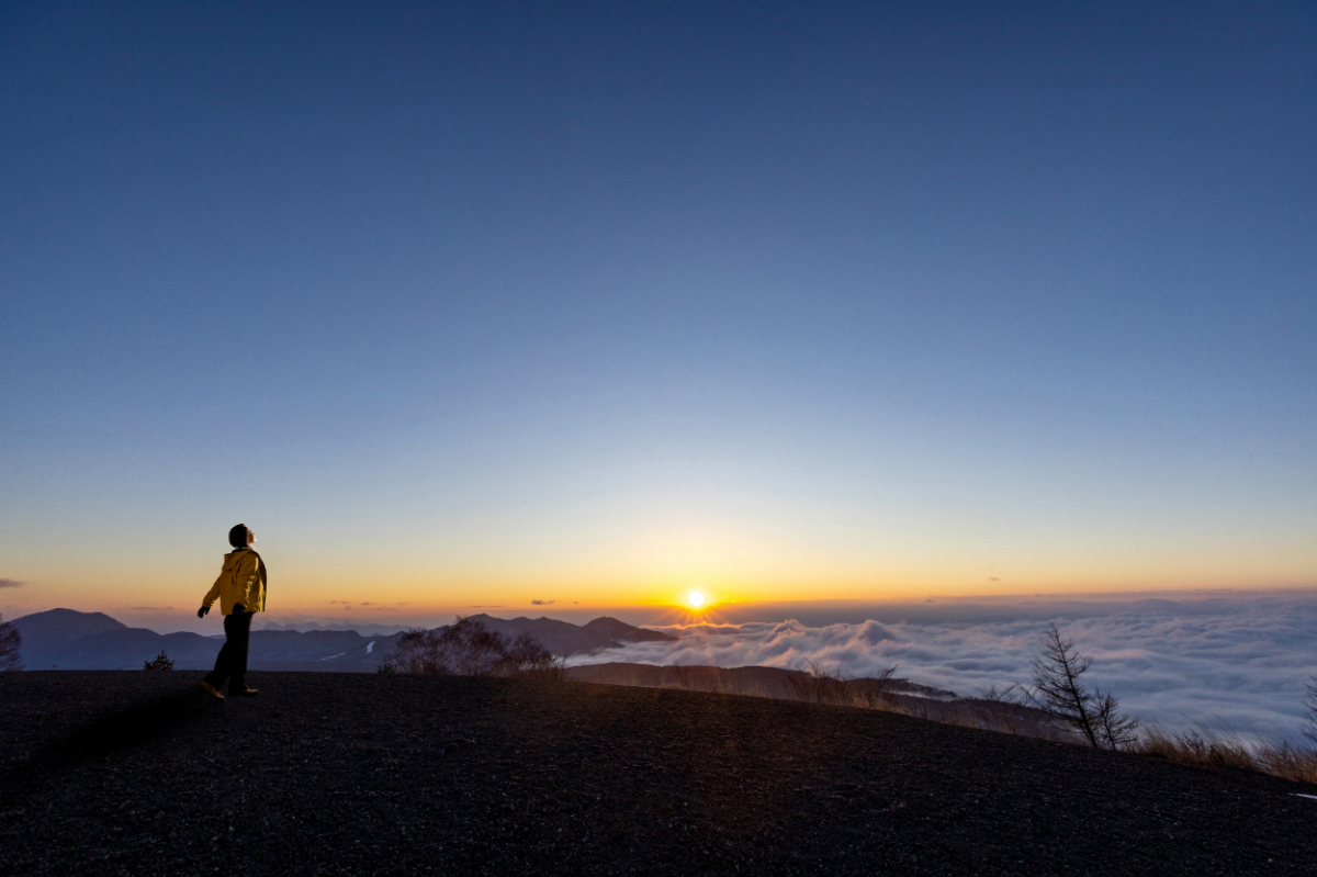 山頂では、お天気が良ければ、地平線の向こうから昇る朝日を見ることもできますよ。暖かな朝の陽ざしを全身で浴びてみましょう。