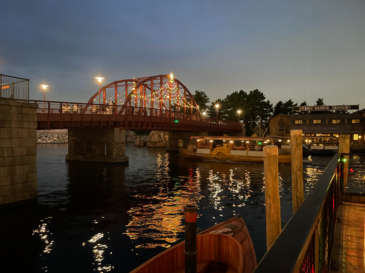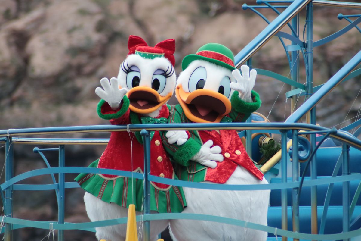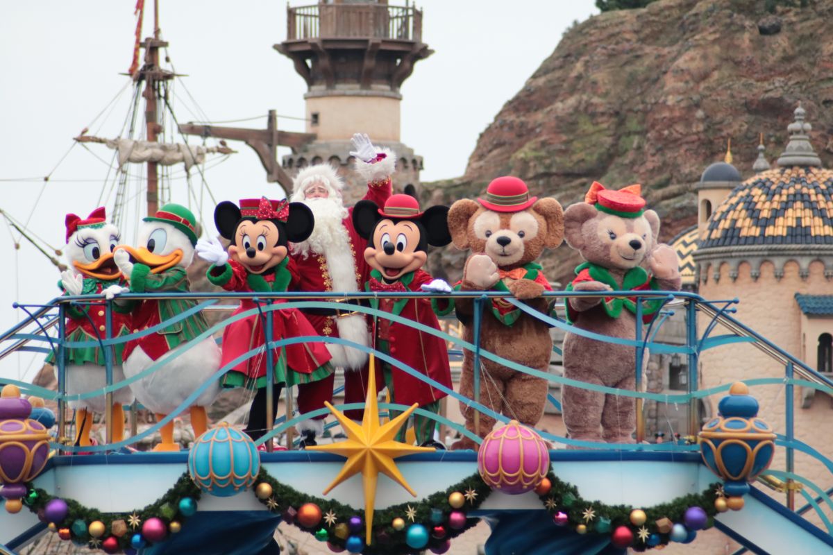 東京ディズニーシーで恒例の、キャラクターが船に乗ってやってきてゲストにご挨拶するハーバーグリーティングがクリスマス仕様になっています。