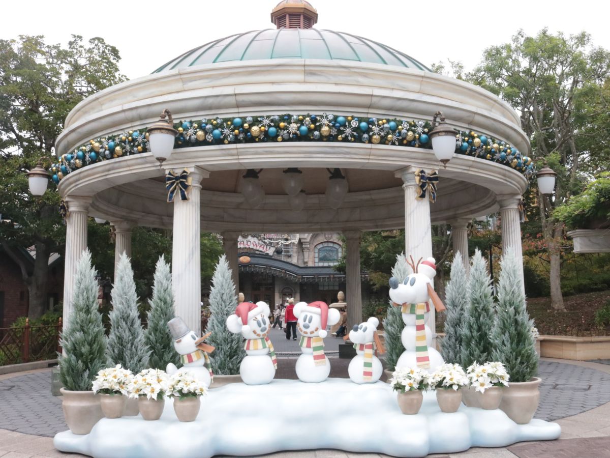 今年の「ダズリング・クリスマス・イン・ニューヨーク」はブルーカラーが基調になっていて、日中はさわやかな雰囲気に。アメリカンウォーターフロントパークには、キャラクターモチーフのかわいい雪だるまが登場♪ フォトスポットとしても人気でした!