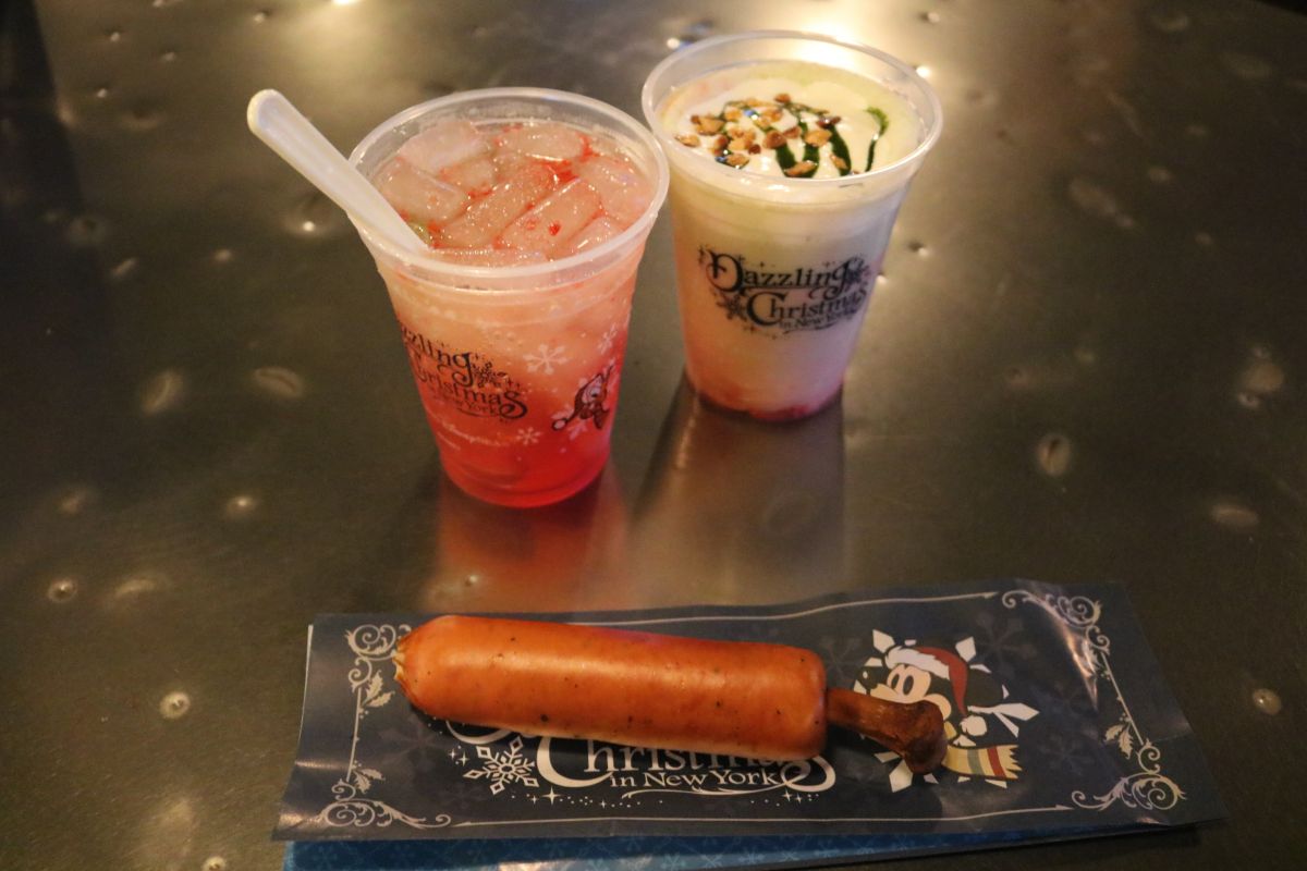 「ダズリング・クリスマス・イン・ニューヨーク」ではスペシャルメニューも用意されています。今回はおすすめのドリンク2種と骨付きソーセージを実食してきました。