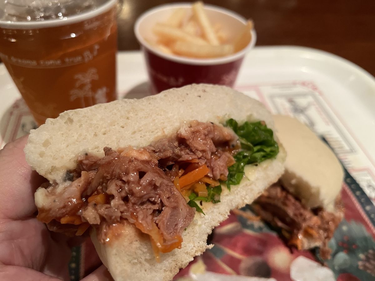 とにかくボリューミーなサンドイッチ。ローストビーフとマッシュポテトとサニーレタスにチーズがサンドされていて、ひと口ほおばれば、クリスマスのメインディッシュのような贅沢感が口の中に広がります。