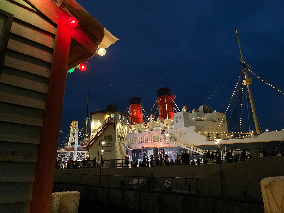 反対側のS.S.コロンビア号側もおすすめ。ライトアップされた船をみていると、まるで今から船旅に出発するような気分になれます。