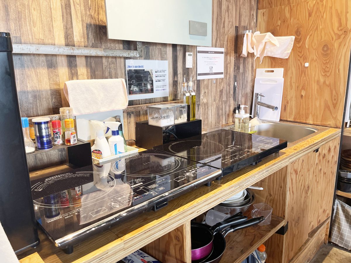 レンジやIHがあるほか、冷蔵庫や調理器具、一部の調味料も宿泊者は自由に使用できます。料理を作って食べながら、宿泊者同士で交流できるのも、なんだか新鮮で面白いですよね。