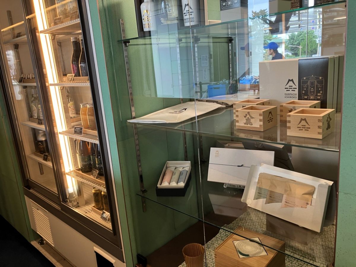 うきは駅で購入したものを並べてみました。車内販売や食事だけでなく、途中で下車して買い物ができるのも「かんぱち・いちろく」ならではの楽しみ方ですね。