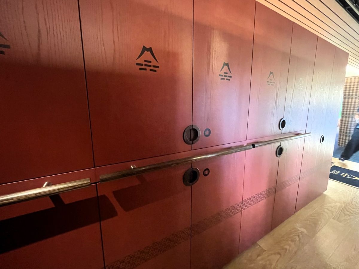 乗車したら、まずは荷物をロッカーへ。スーツケースなど大きな荷物も、扉付きのロッカーが乗車口そばにあるので、安心です。