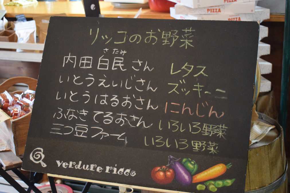 店の特徴は、地元千葉県山武市で採れた食材をふんだんに使っていること。店内にある黒板には、作った人の名前が記されています。