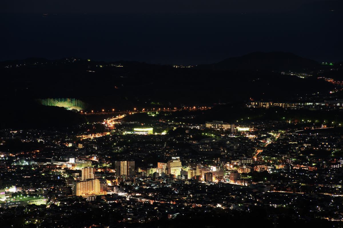 ①展望台、ベンチ、駐車場から夜景が一望!