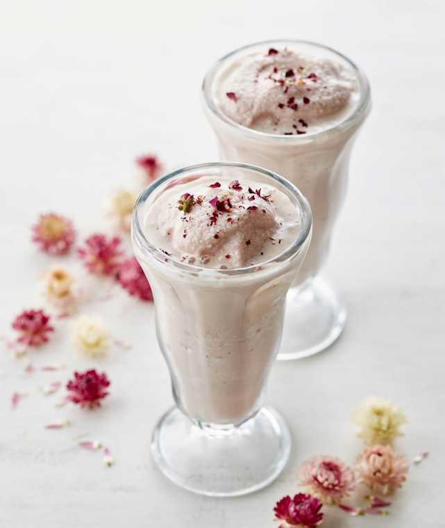 淡いピンクのスムージーに、ローズフラワーがトッピングされた「フェアリーズティースムージー ストロベリーローズ」788円。フォトジェニックなメニューに加え、もちろん味もgood。一番人気というのも納得!