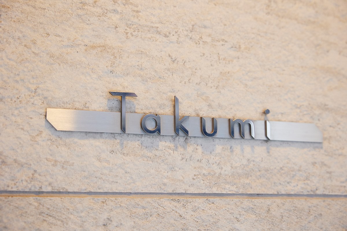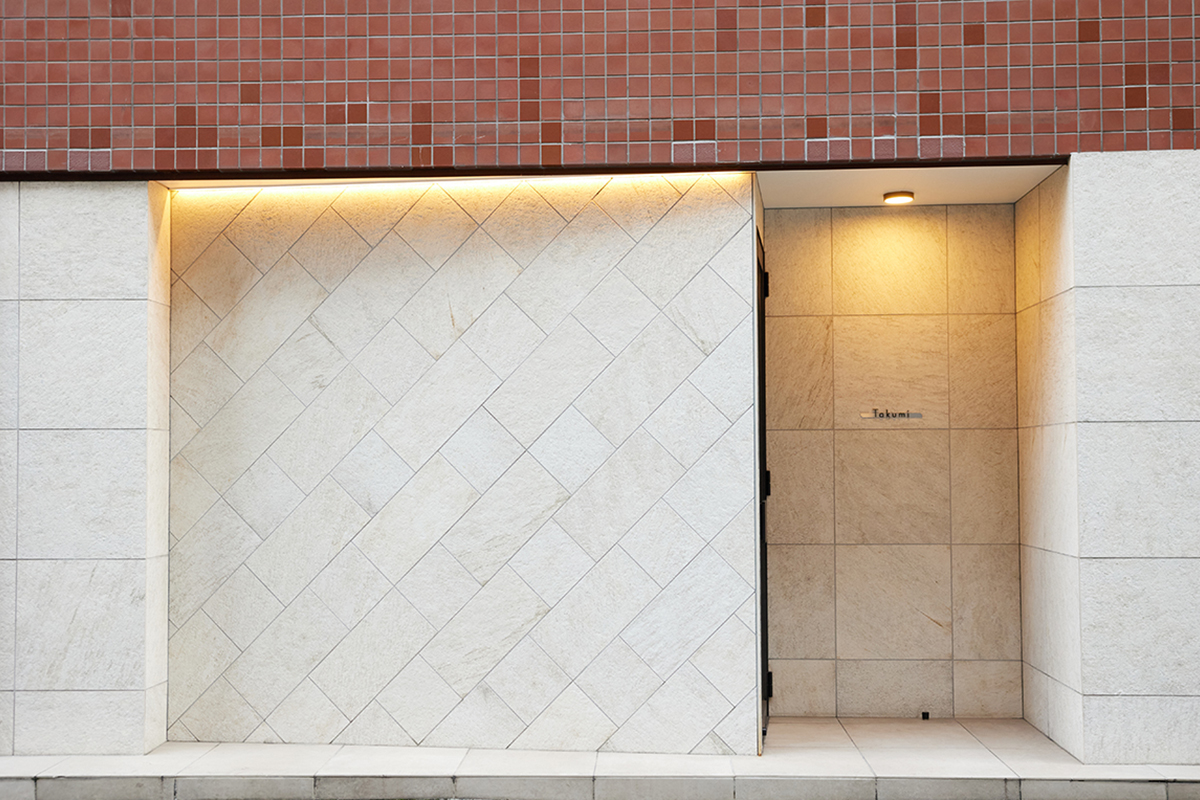 東京メトロ六本木駅から六本木通りを渋谷方面に8分ほど歩き、1本路地に入ったところに「Takumi」はあります。外観は白いレンガで覆われ、店のサインは小さく掲げられているだけというシンプルさ。思わず通り過ぎてしまわないように注意です。