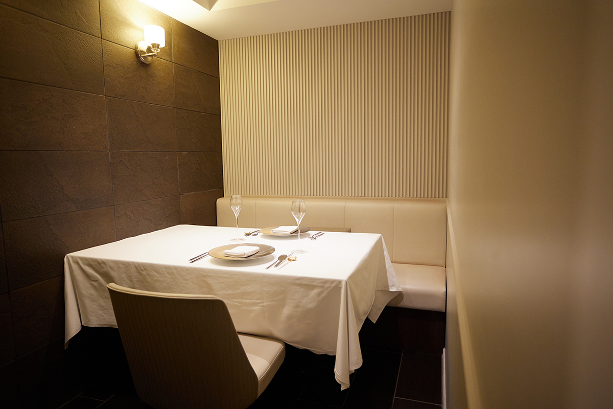 店内には、一切インテリアの類がありません。それは「料理が主役で一番美しく引き立たせるべき存在」という考えのもと。ミニマルな空間で、五感をフルに稼働させつつ、フレンチを堪能できるというぜいたくさがここにはあります。