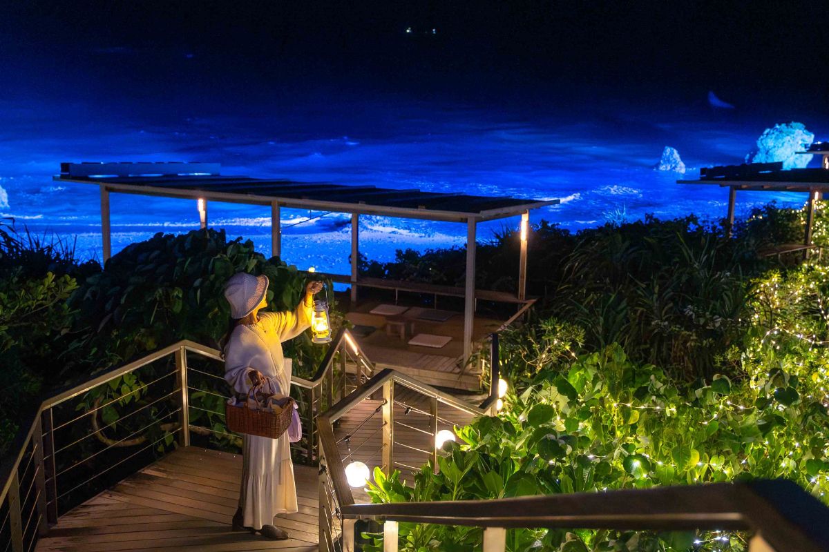 イベント期間中は⽬の前に広がる海や⽩砂のビーチ、波に削られた奇岩をライトアップ。崖の上から海へと続く道には穏やかな明かりのイルミネーションが灯ります。打ち寄せる波が⽩く輝くビーチで波と戯れたり、⻘々とした葉が茂る南国らしい植物が育つ森を散歩したり、冬でも過ごしやすい屋外での時間を満喫できますよ。