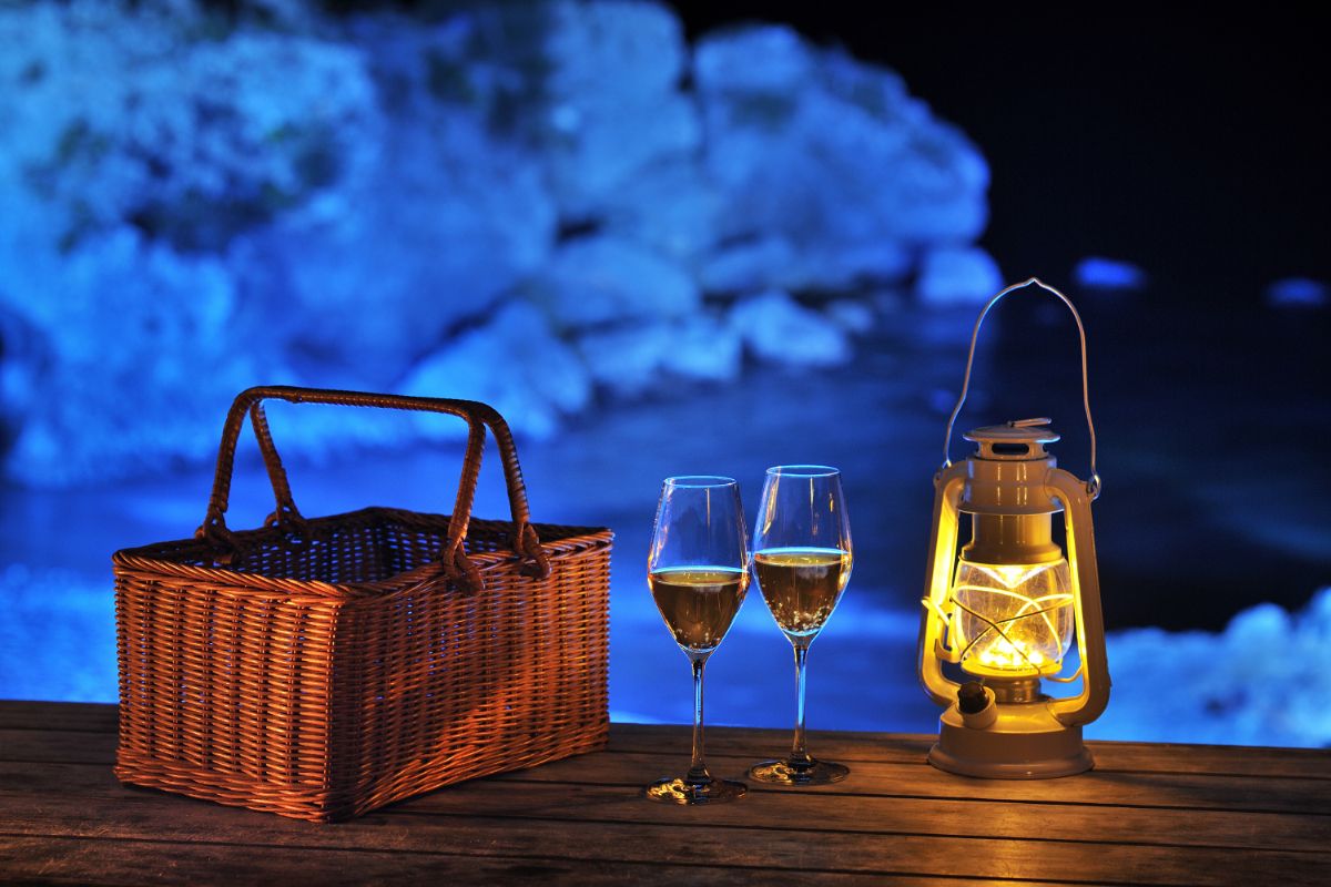 さらにランタンとビーチマットも貸し出してもらえるので、白砂のビーチや高台のテラスなど、好きな場所で夜のピクニックが楽しめます。