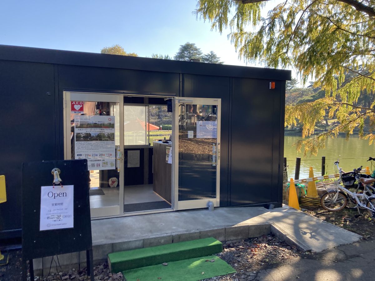舟遊池は園内の北西の一画にあります。受け付けやチケットの購入、ドリンクの注文は池の北東岸に立つ建物で行います。スタイリッシュな黒い外観が目印です。雨天など悪天候時には臨時休業となるので、事前に電話等で営業の確認をしましょう。