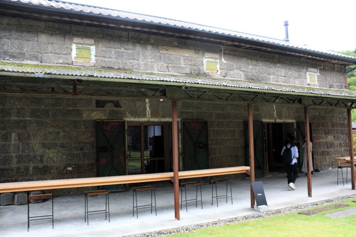 石造りの外壁はそのまま残し、建物内部は木や銅板など、異なる素材を使った現代風のスペースになっています。建物内はギャラリーとカフェが隣り合い、外には1日3組限定のプライベートサウナ「閃閃(せんせん)」もあるので、旅の途中で立ち寄ればゆったりとした時間が過ごせそうです。