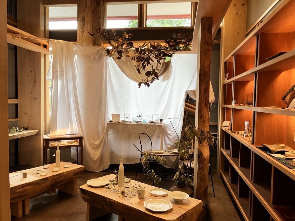 駅舎内にあるショップにも注目です。駅にある売店といえば、お菓子や民芸品といった、手軽なおみやげ品を販売しているのを想像しますが、リニューアル後にオープンしたショップ「慈慈(じじ)」では、地元に限らず、全国から集められた手仕事の品を販売しています。陶器やガラスの器、扇子など、丁寧に作られたアイテムが並ぶので、ショップを目当てに駅を訪れるのもオススメです。