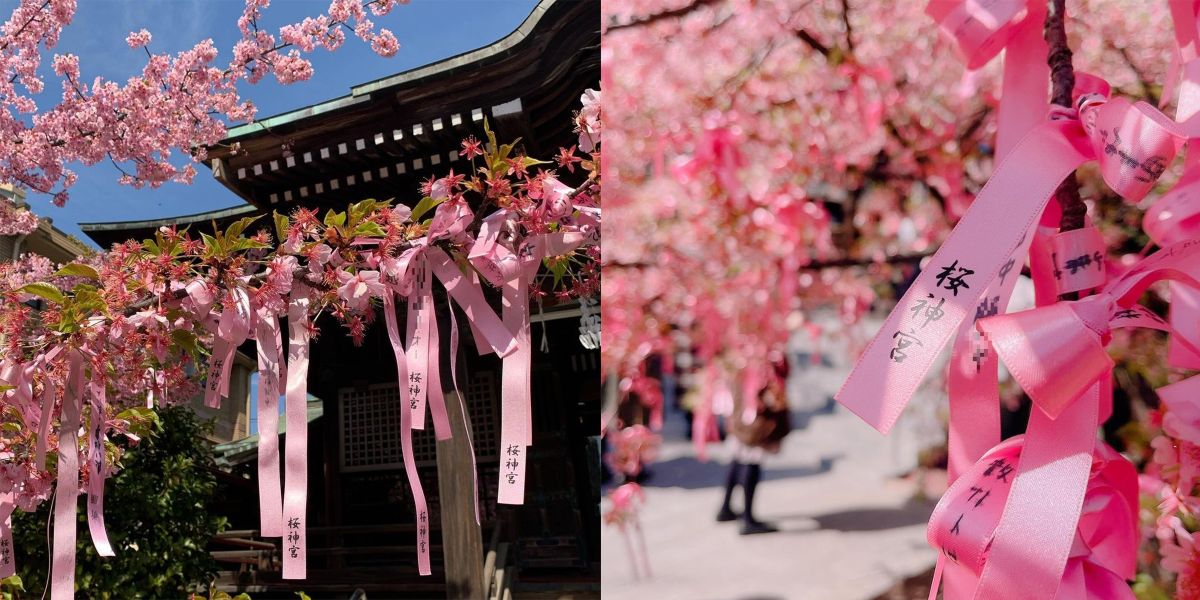 桜が満開の時期だけでなく、一年を通して桜色のリボンが咲き誇る華やかな光景が見られる「桜神宮」で、さまざまな良縁を祈願してみてはいかが。