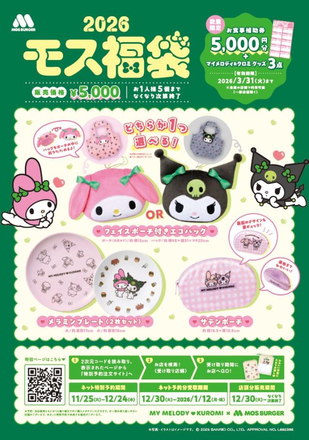 【福袋2026】モスバーガー「2026モス福袋」が予約受付中! 今年は「マイメロディ」&「クロミ」が登場