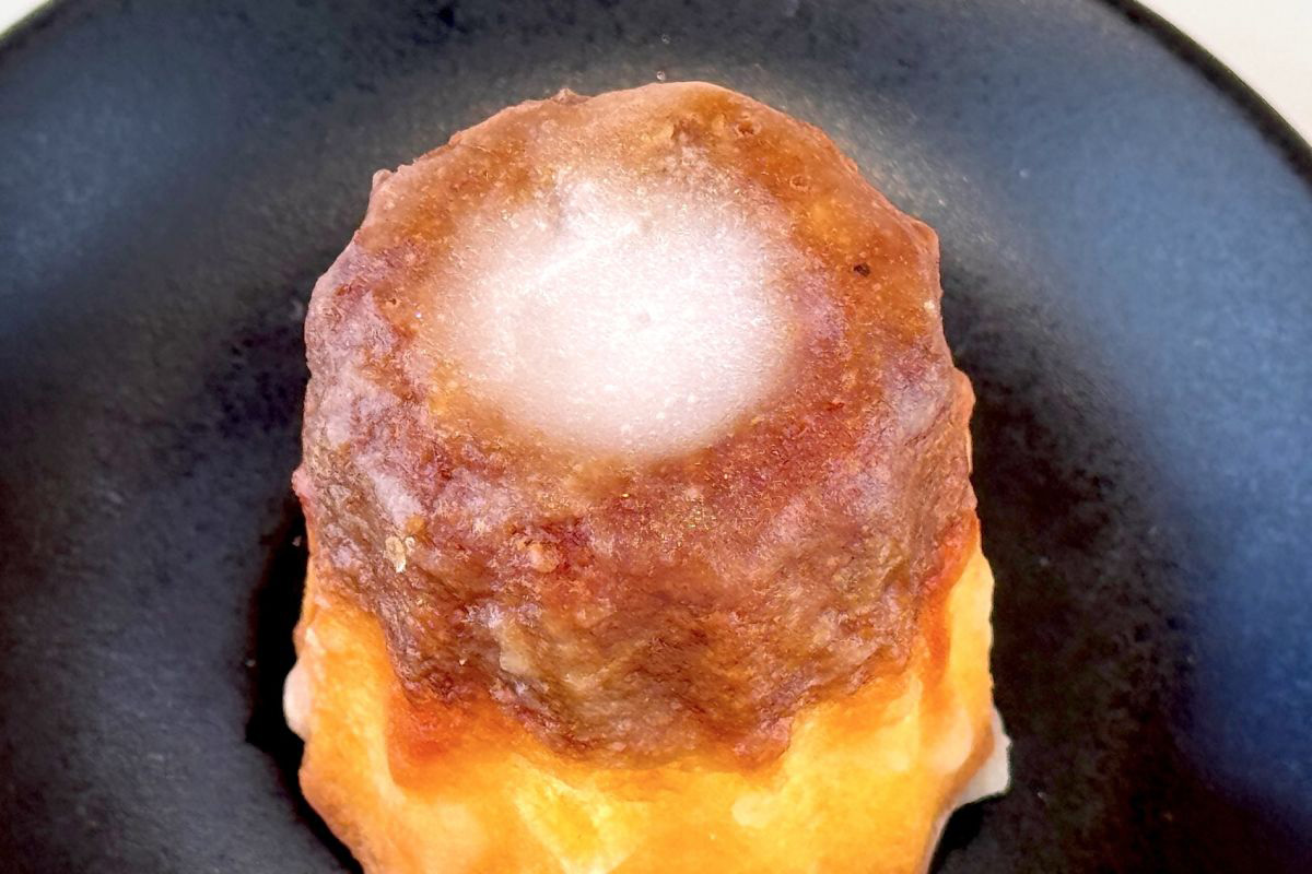 上から見ると火山のよう。表面をコーティングしているシュガーグレイズが、トップ中心にたまっています。