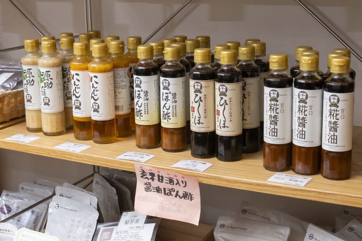 モーニングはイートイン限定ですが、「あおい弁当」1600円や「きまぐれ弁当」950円など、テイクアウトメニューもスタンバイ。店内には料理に使っているこだわりの醤油や味噌などの国産無添加の調味料のほか、「寝かせ玄米®」を手軽に食べられるごはんパックも販売しています。