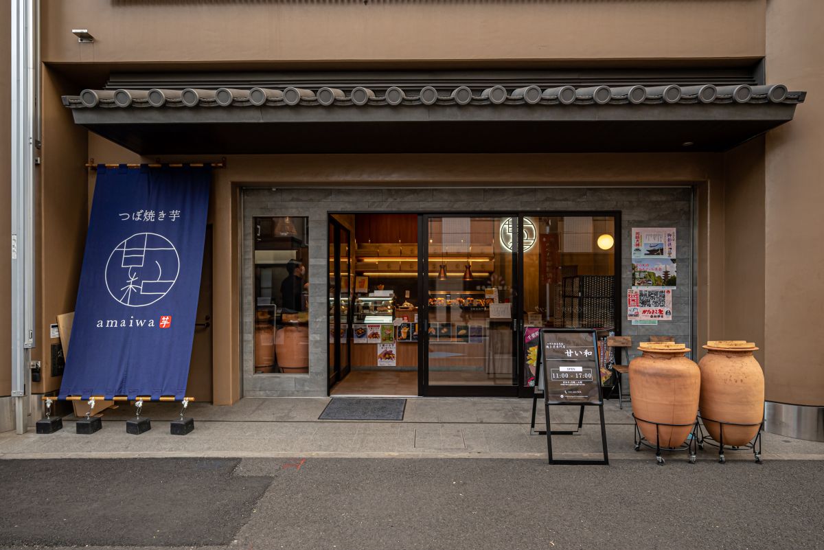 そんな仲見世通りの近くには、昔ながらの素焼きの壺で焼き上げたお芋が食べられる、壺焼き芋専門店「つぼ焼き芋 甘い和。」。壺の底に置いた備長炭からの遠赤外線と、壺壁面からの輻射熱を利用して作った焼き芋は、甘さがぎゅぎゅっと凝縮され、ひと口食べれば普通の焼き芋との違いに驚くはず! 店内で食べられるサツマイモを使ったカフェメニューをはじめ、食べ歩きやおみやげにもぴったりなテイクアウトメニューも充実しています。