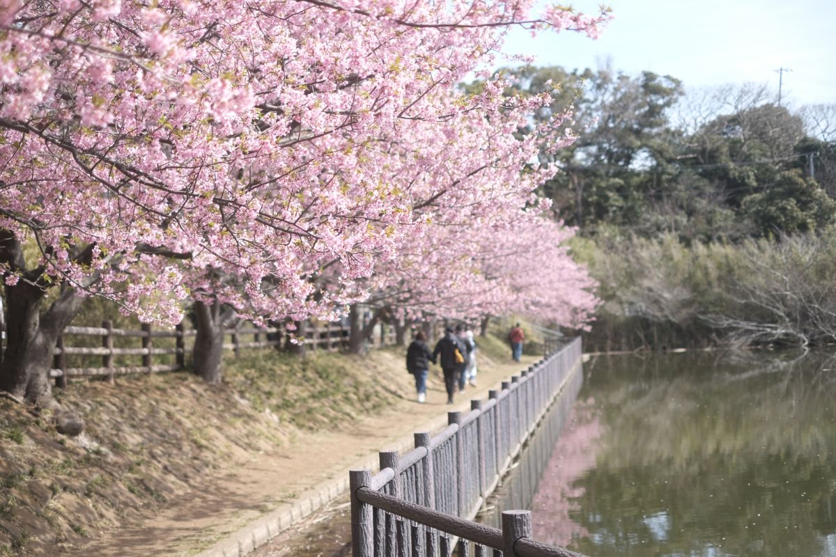小松ヶ池公園は三浦海岸駅から徒歩15分ほどの場所。池の周りにも河津桜が咲き、早春らしい散策が楽しめます。2025年2月5日(水)~3月2日(日)には「三浦海岸桜まつり2025」も開催されるのでお楽しみに!