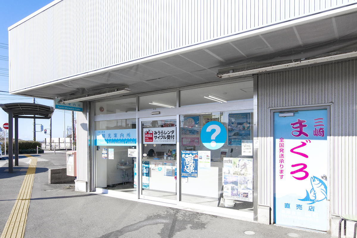 駅改札を出て右手には三崎口駅前観光案内所があります。「みうらレンタサイクル」の貸出・返却ポートにもなっているので、「三浦・三崎おもひで券」を利用して、ここから電動アシスト自転車で観光スポットをめぐるのもいいですね。