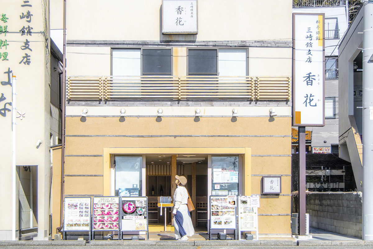 三浦半島の南端に位置する三崎港は、昭和初期から遠洋漁業基地として栄え、まぐろの水揚げは全国トップクラス。まぐろを提供する店はたくさんありますが、なかでも「三崎館支店 香花」は三崎港目の前という立地のよさと、種類豊富なまぐろ料理で人気のお店です。