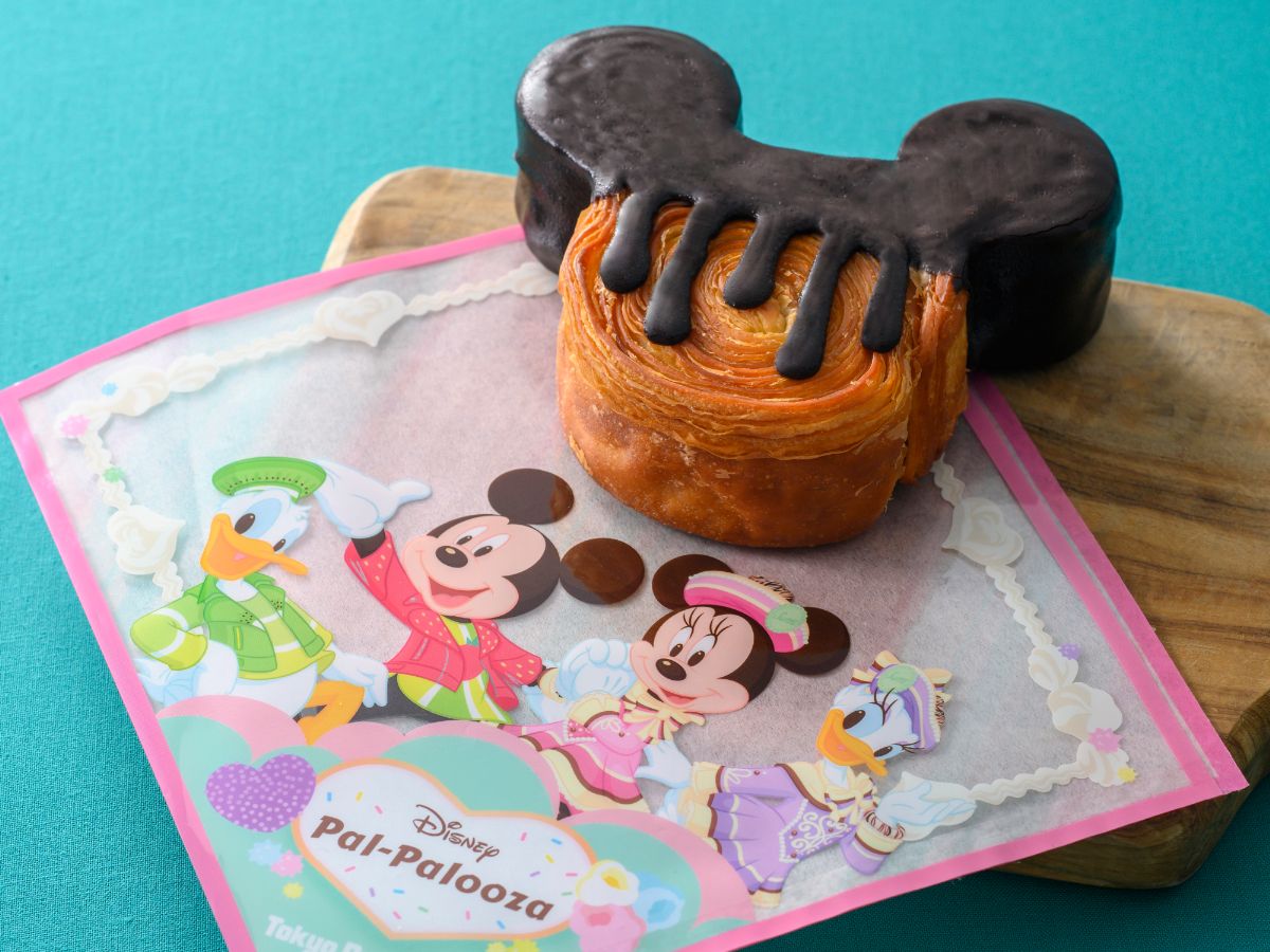 ミッキーシェイプのデニッシュにコーヒーソースを入れたスウィーツが登場。とろりと垂れたようなチョコのコーティングがポイント。※フードブースでも販売されます。
