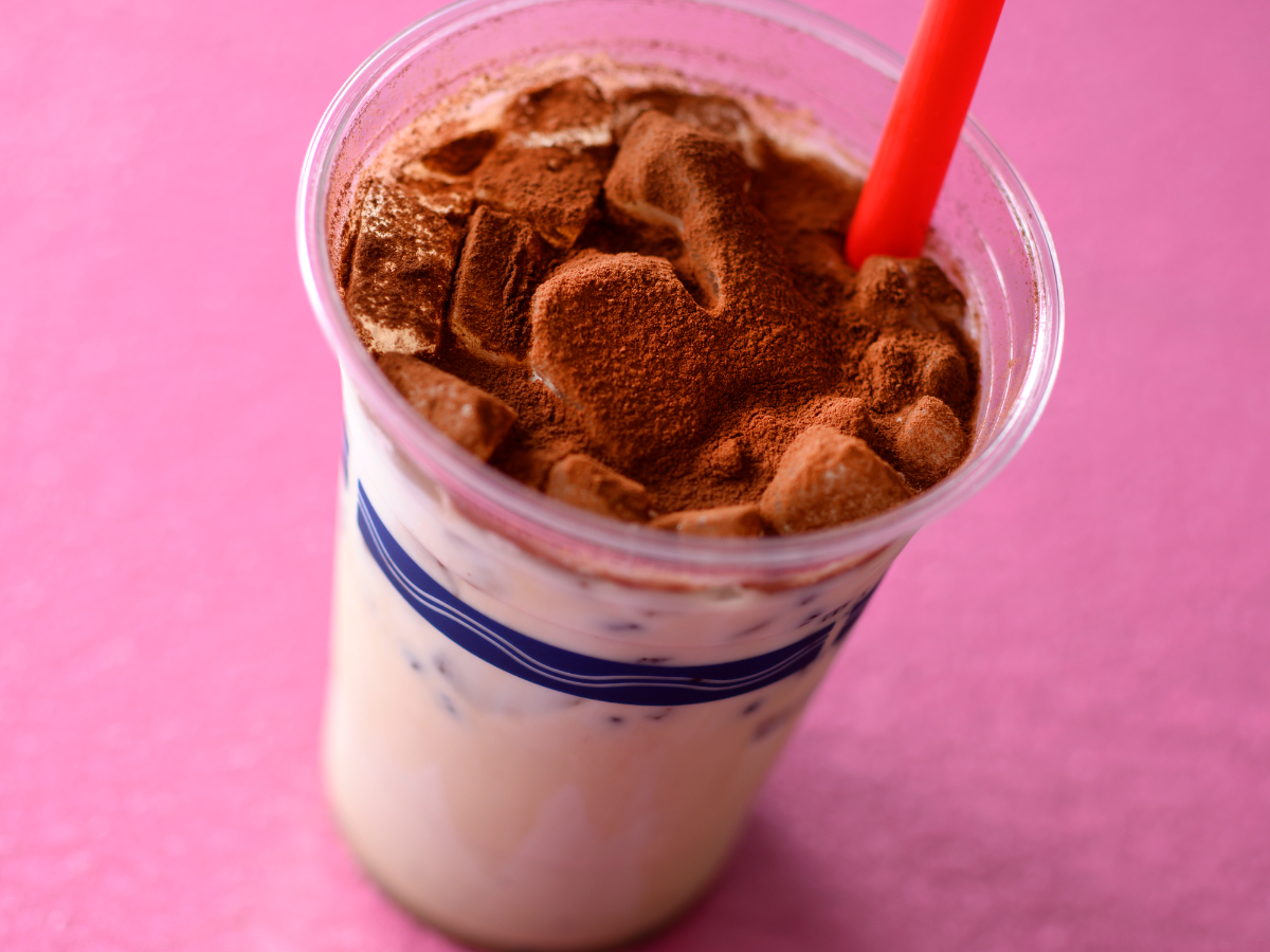 チーズケーキをイメージしたドリンクは、レアチーズケーキのような濃厚な風味の中にレモンの酸味が加わった一品。カラフルなあられの、サクサクとした食感がポイント!