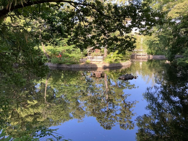 湧き水が満ちる「神の池」を中心に境内は広がります。はるか悠久の昔から水の豊かな土地で、神秘的な泉を意味する古語「ひかわ」が社名の由来の一つなのだとか。自然からのエネルギーをチャージできる特別なパワースポットです。