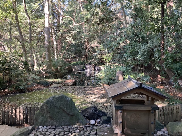 本殿をお参りした後にぜひ訪れてほしいのが、氷川神社発祥の地とも伝えられる蛇の池です。神の池を潤す湧水の源泉で、近年までは聖なる場所として立入を禁じられていて、目にすることができませんでした。清らかな水の流れからは、癒やしをもらえます。静かにお参りをしましょう。