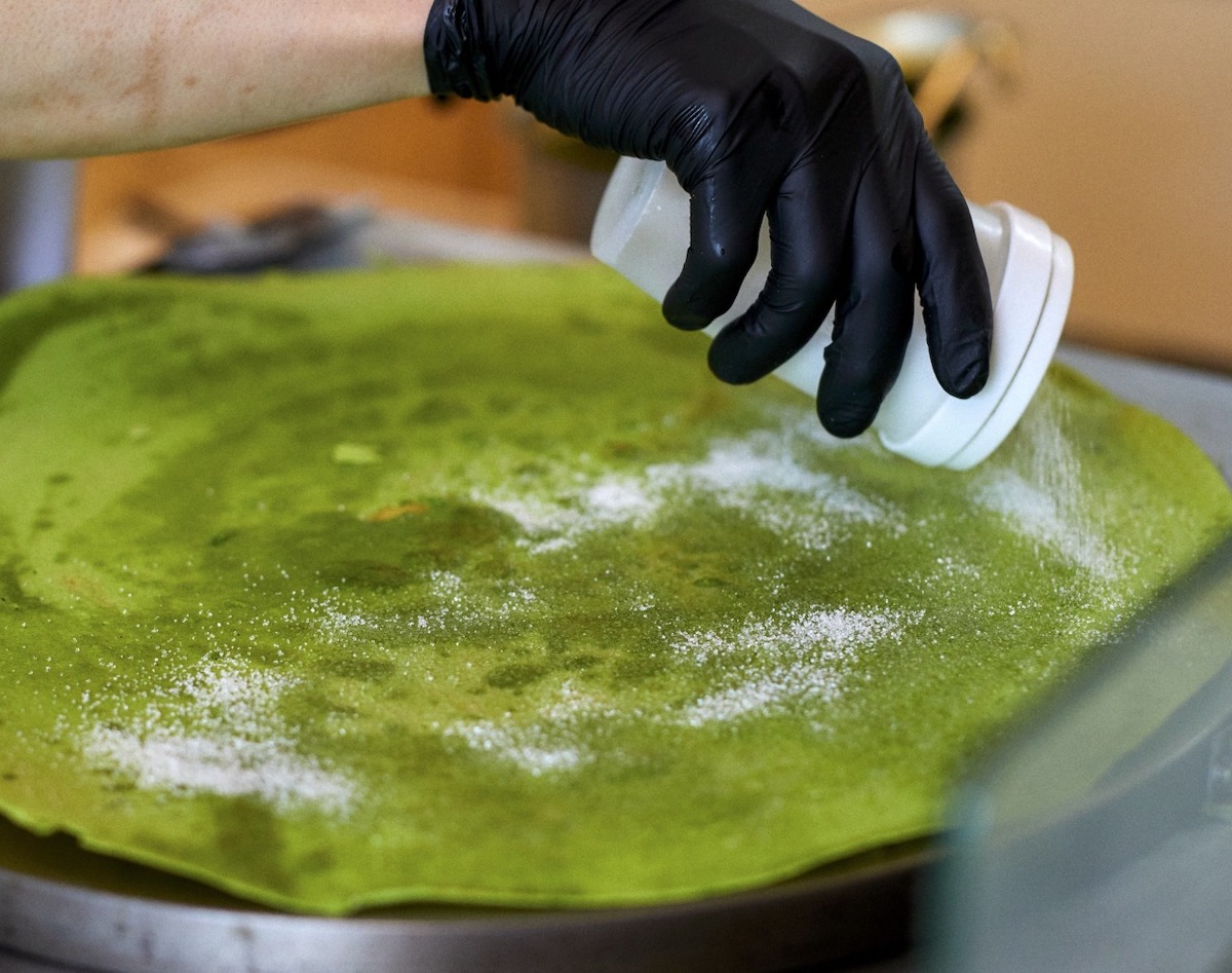 薄さ0.1㎜? 極限まで薄いパリパリ生地の食感と抹茶の香りがたまらない「クレープとエスプレッソと嵐山」の抹茶クレープ