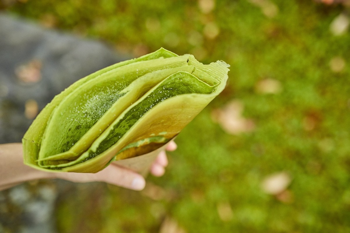 抹茶クレープは、八十八良葉舎の香り高い抹茶を使用した京都嵐山限定商品