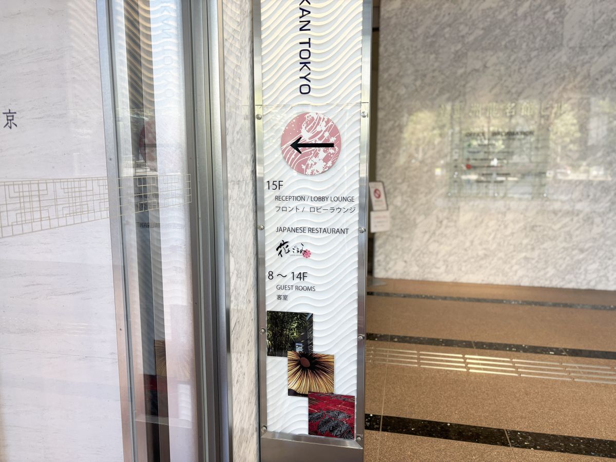 ホテルのロビーは15階。エレベーターで向かいます。8〜14階が客室、最上階の15階が、ロビーやレストランなどの施設となっています。