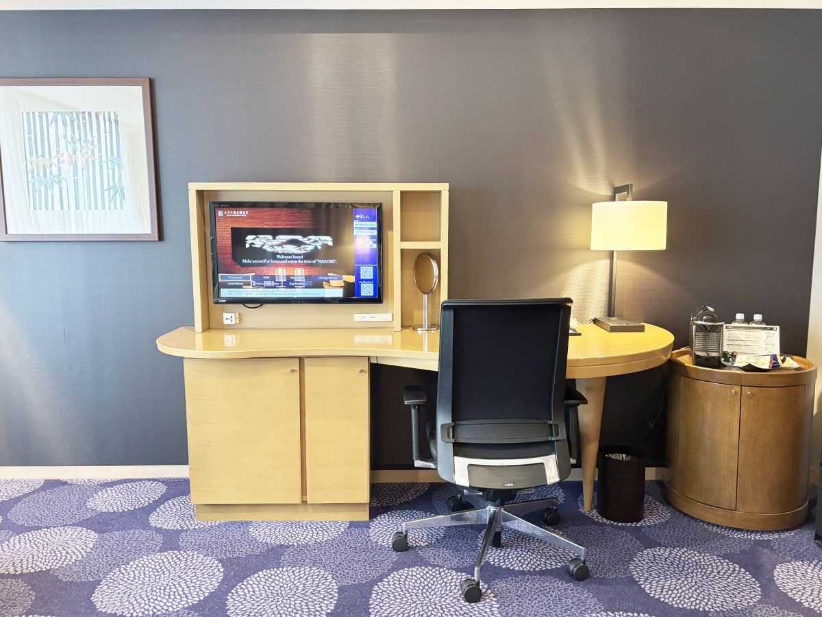ベッドの向かいには、テレビとデスクスペースがあります。