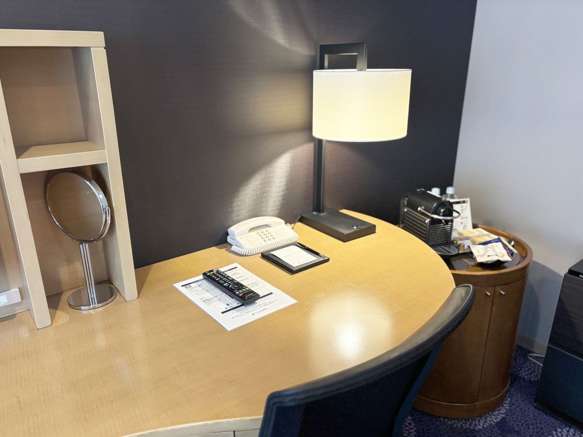 コーヒーマシーンとお茶菓子も用意されています。お菓子は、ホテルのある日本橋・東京エリアの老舗和菓子店「榮太樓總本鋪(えいたろうそうほんぽ)」の「ピーセン」です。